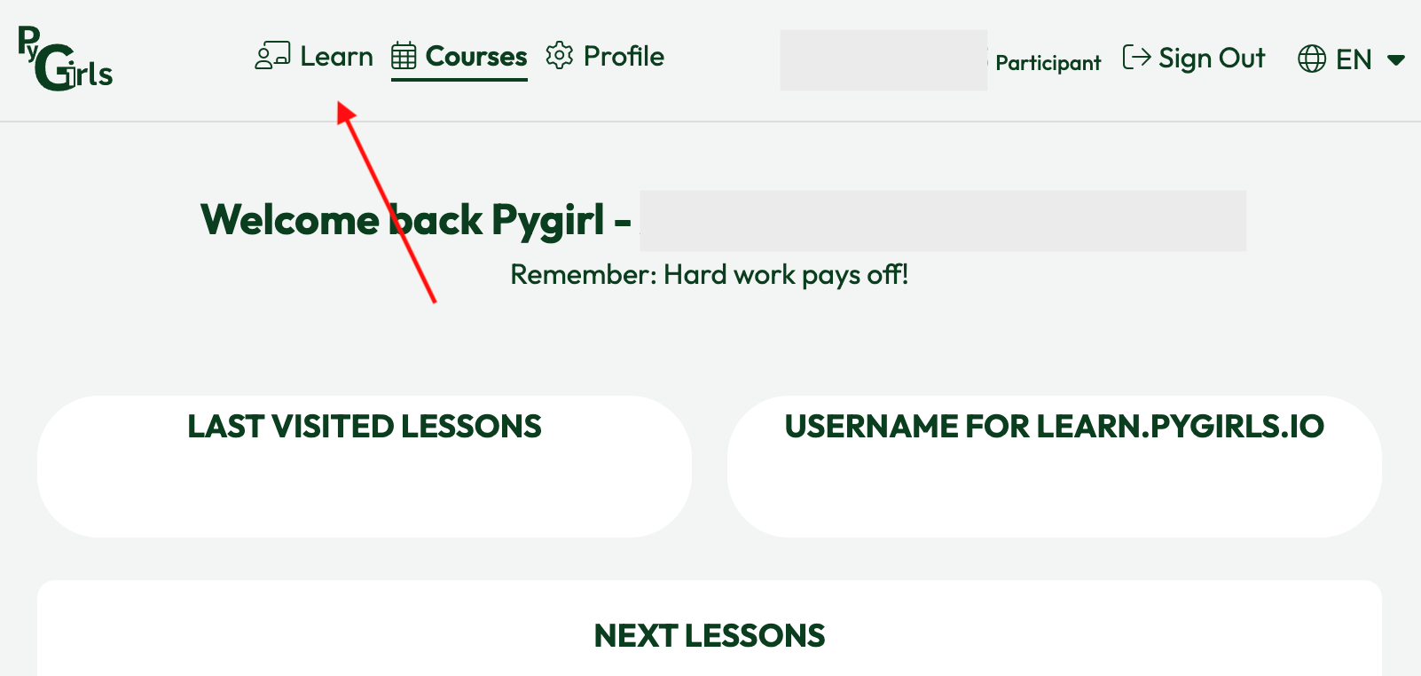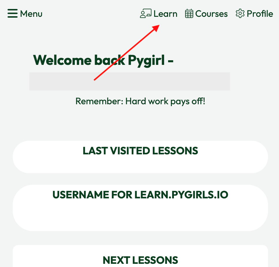 You might sometimes be asked to allow the learning platform access to your PyGirls data. Click Approve if asked.